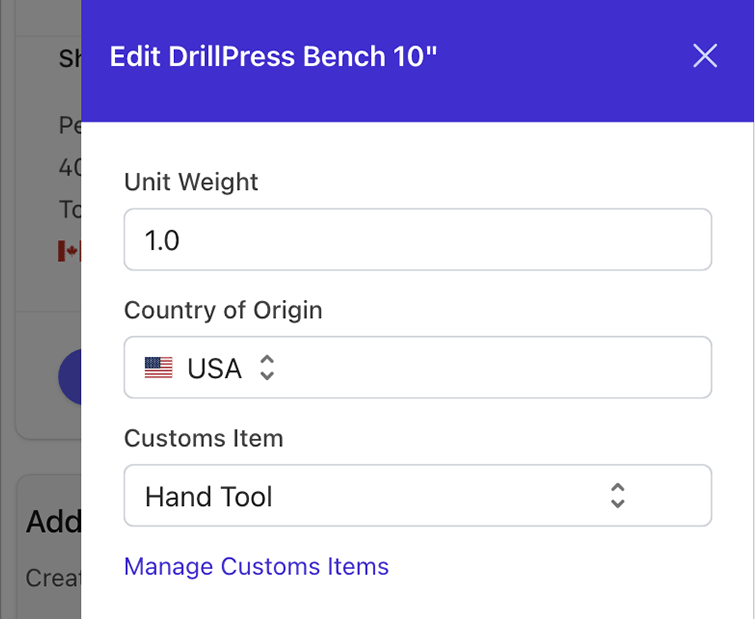 Setting customs items and country of origin once means you don't have to enter this information manually for every international shipment. The customs declaration is generated automatically.
